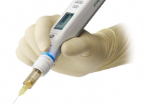 麻酔で痛いのが針が刺さるときと、もう1つが麻酔液を体内に注入されるときの圧迫感。麻酔を注入するスピードをコントロールすることでこの圧迫感を少なくできます。これは手動ではとても難しいので、コンピュータ制御の電動麻酔器を使用しています。