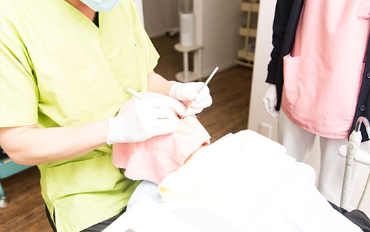 お薬で炎症をおさえて痛みや苦痛を少なくした状態から、スケーリング(歯垢・歯石除去)やブラッシング指導を行い、歯周病治療を進めていきます。
